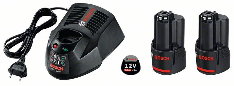 2 batteries de 12 V / 3,0 Ah et chargeur rapide