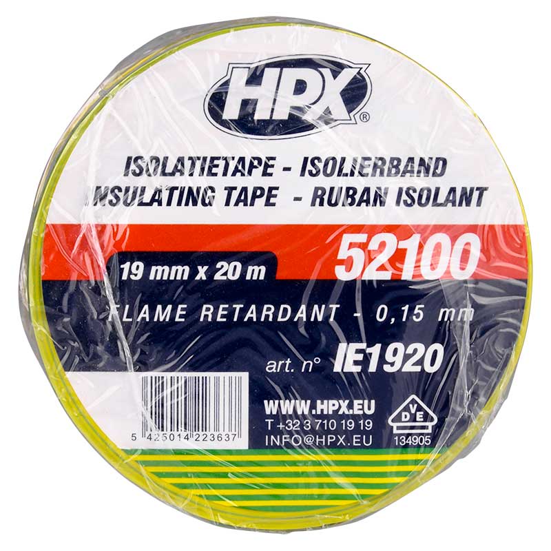 Ruban isolant PVC VDE - jaune/vert 19mm x 20m